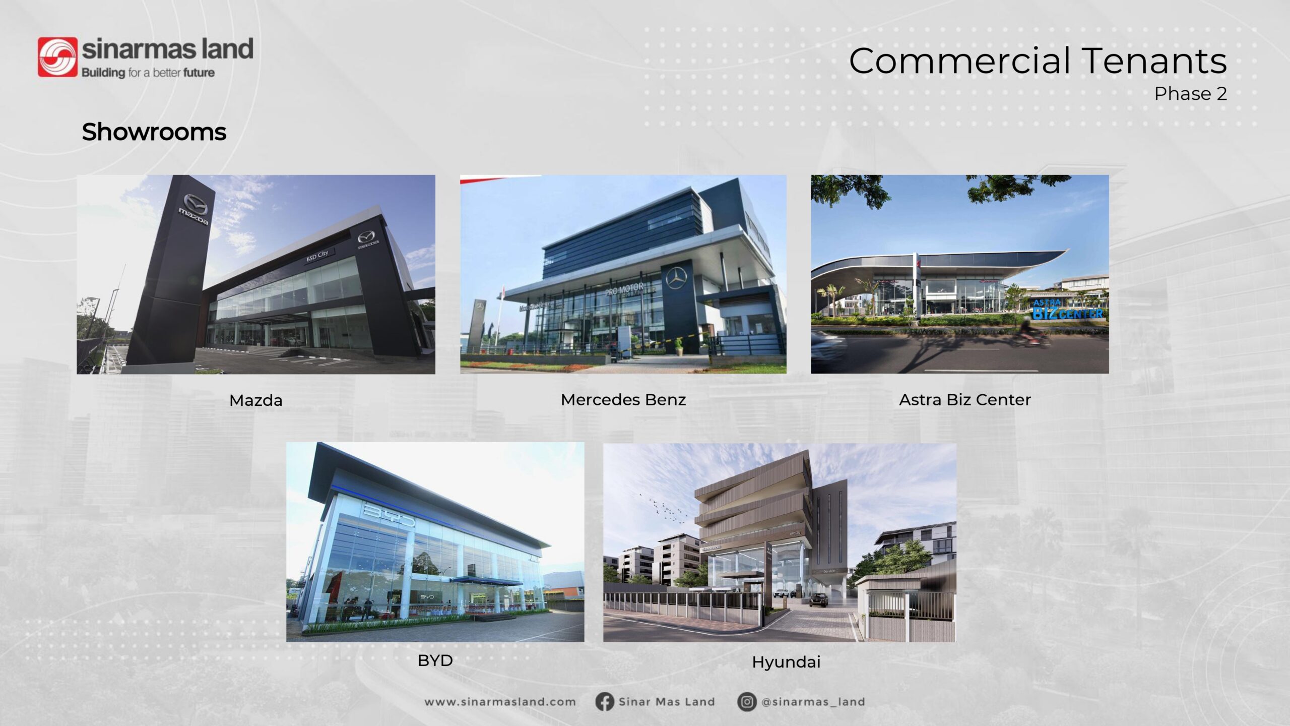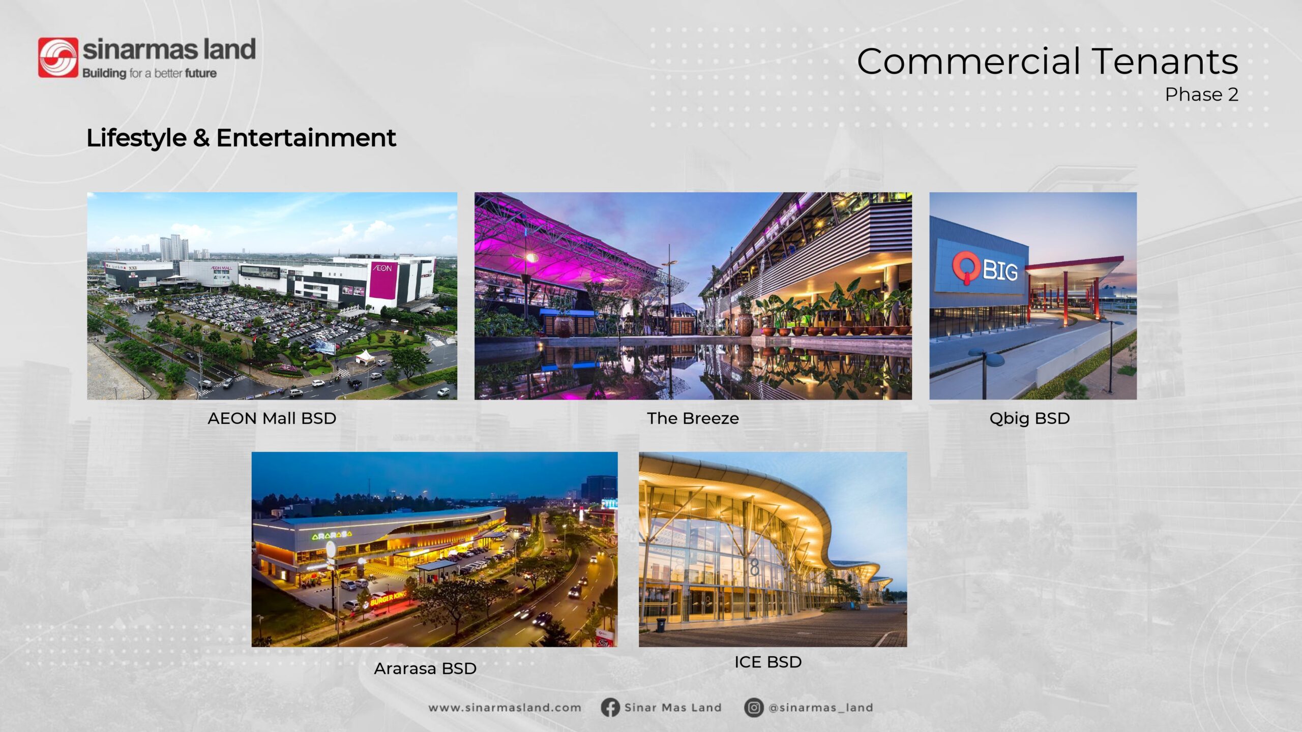 Sinar Mas Land merupakan pengembang properti terbesar dengan diversifikasi proyek paling beragam di Indonesia. Perusahaan ini terkenal kaya akan pengalaman di bidang pengembangan properti yang telah dipupuk selama lebih dari 40 tahun.
