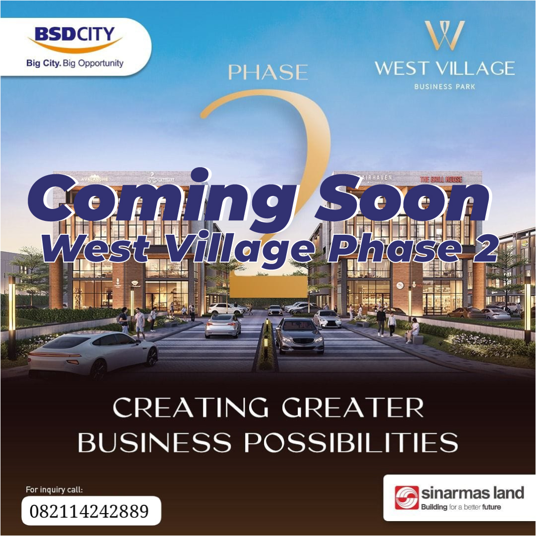 West Village is your gateway to the future of BSD City. With its “Business Park” theme, West Village stands out as the newest commercial complex in BSD City, boasting a modern facade design, three floors, and suitability for various businesses.