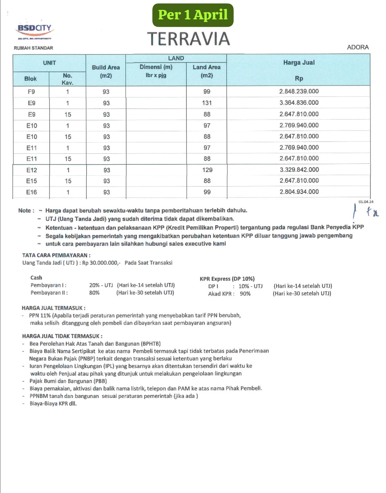 Terravia, the newest residence with an environmentally friendly and sustainable concept in BSD City. Carrying the concept of green and sustainable living, Terravia is the right choice as a healthy, safe and comfortable residence for families. Strategically located right next to Eastvara Leisure Mall, this residence offers 6 unit types, namely 3 bedrooms and 3 bathrooms.